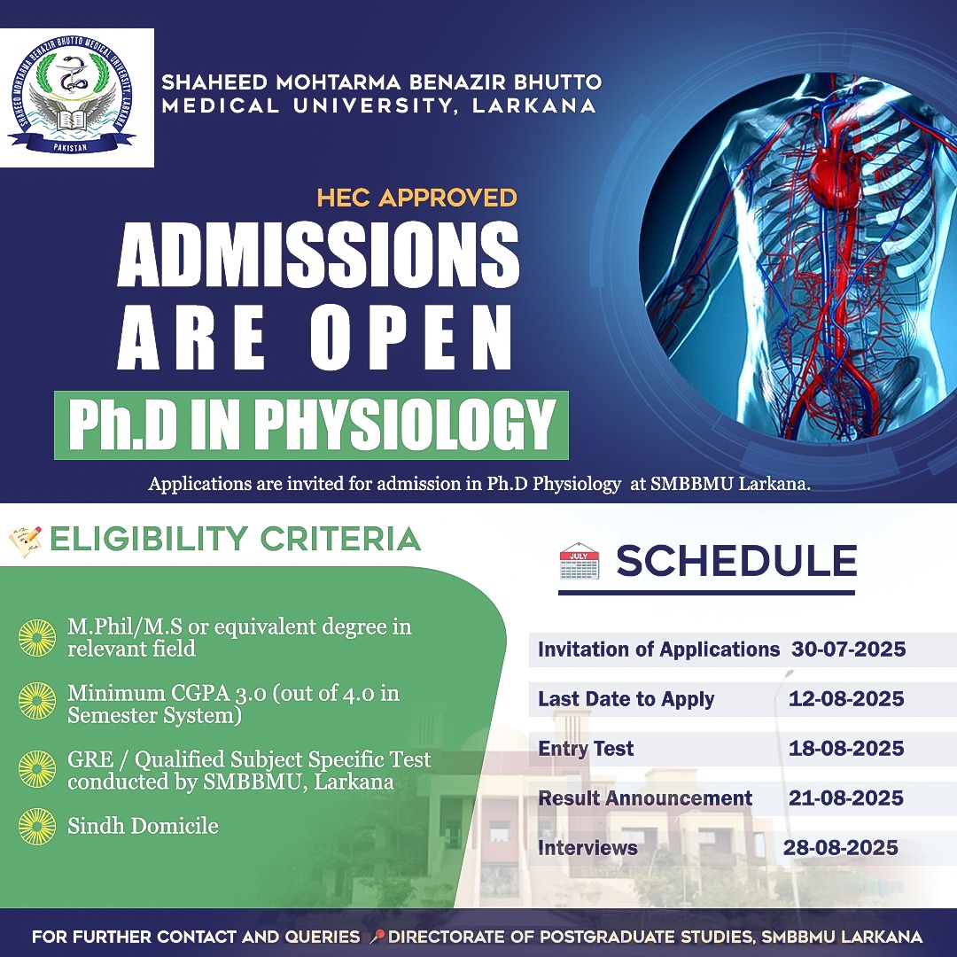 Admissions are open for PHD in Physiology