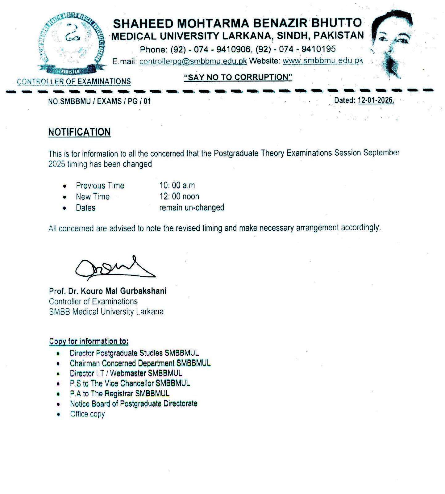 Notice for Postgraduate Theory Examinations Session September 2025